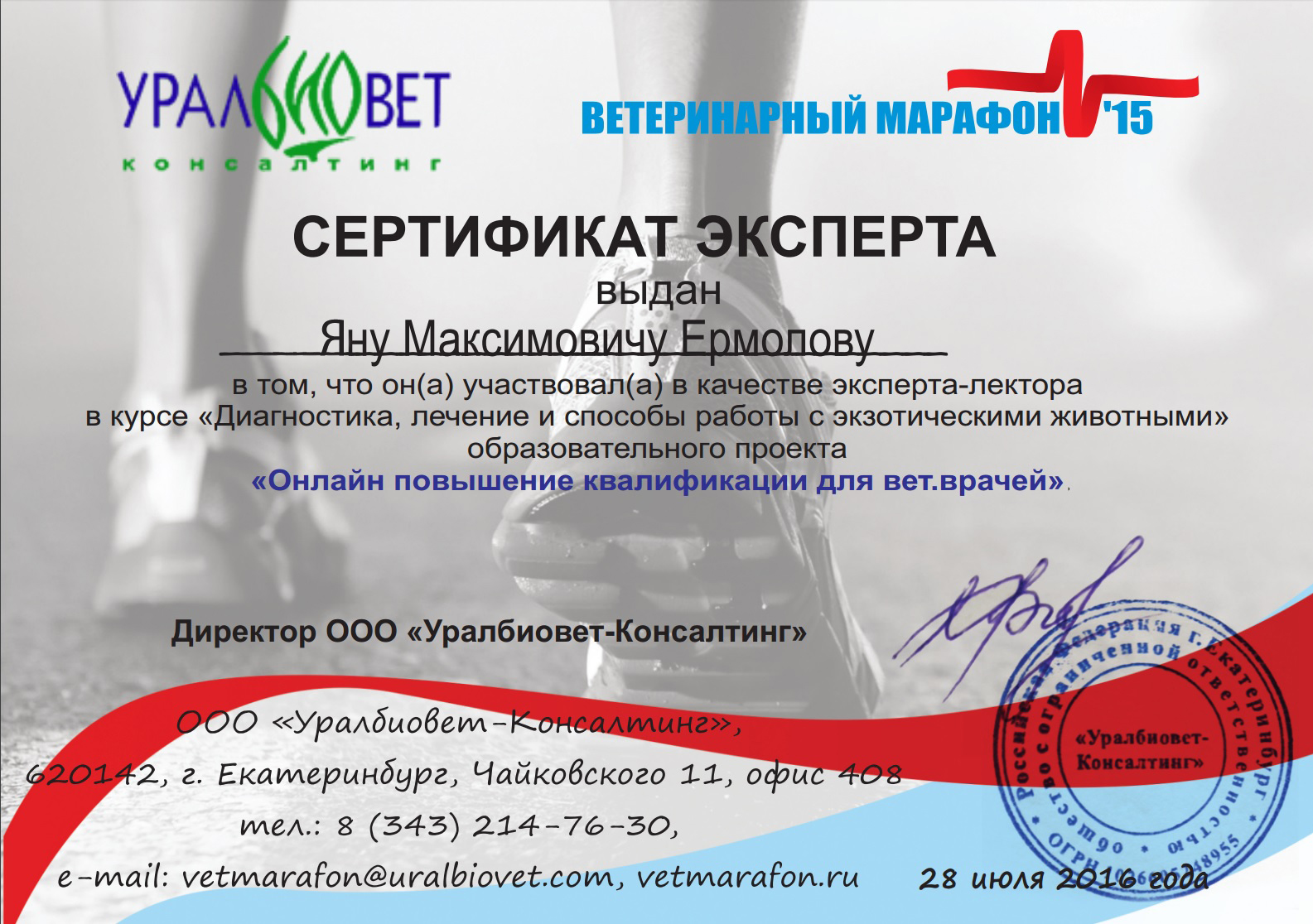 - 2021 г. — ветеринарный врач, ООО «Космос Сафари»;