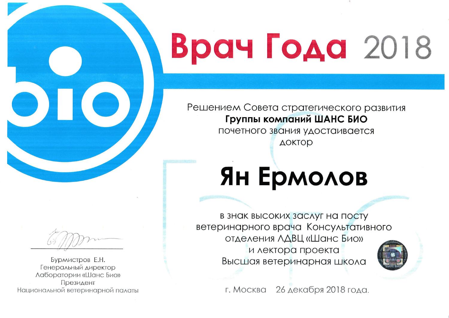 - 2017-2019 гг. — ветеринарный врач, ООО «Шанс Био»;