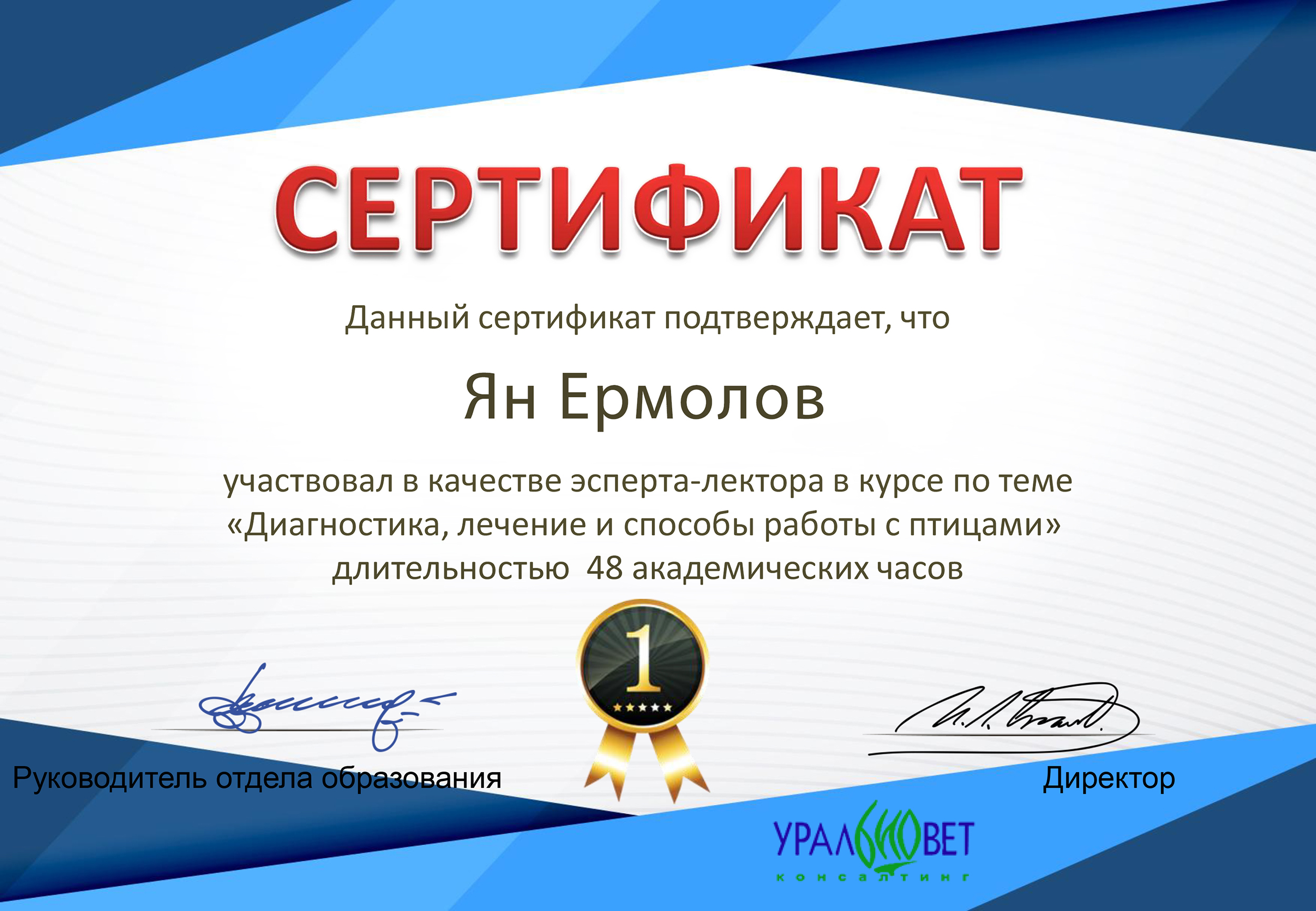 - 2023 г. — ветеринарный врач, ООО «Аветтура»;