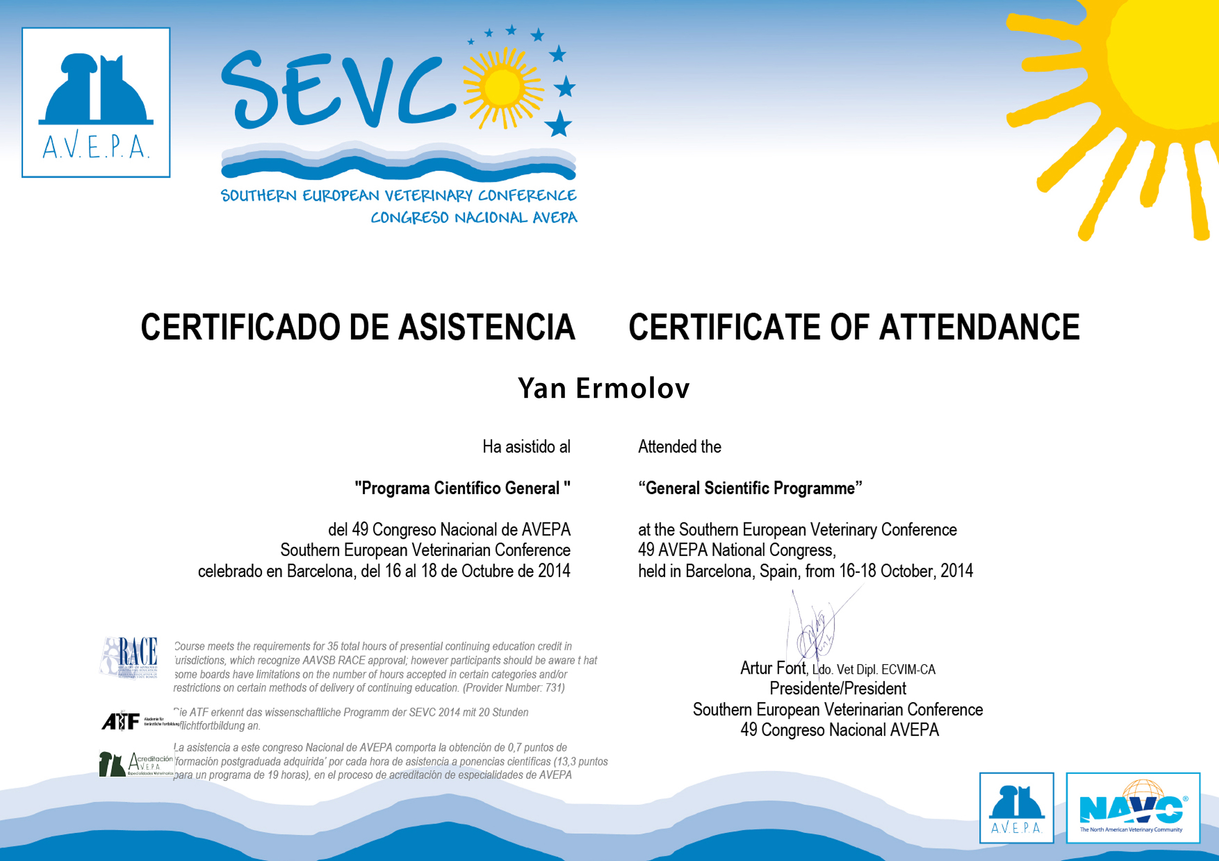- 2012 г. — волонтёр, ассистент серпентолога, «Zoo Santa Cruz de la Sierra»;