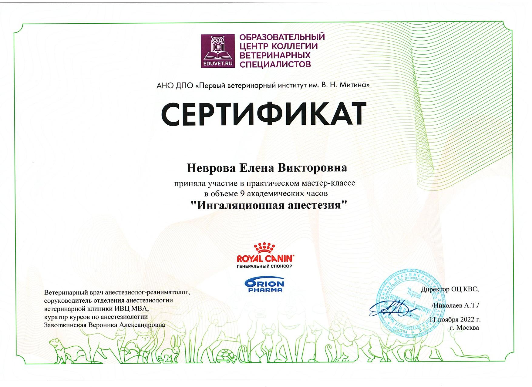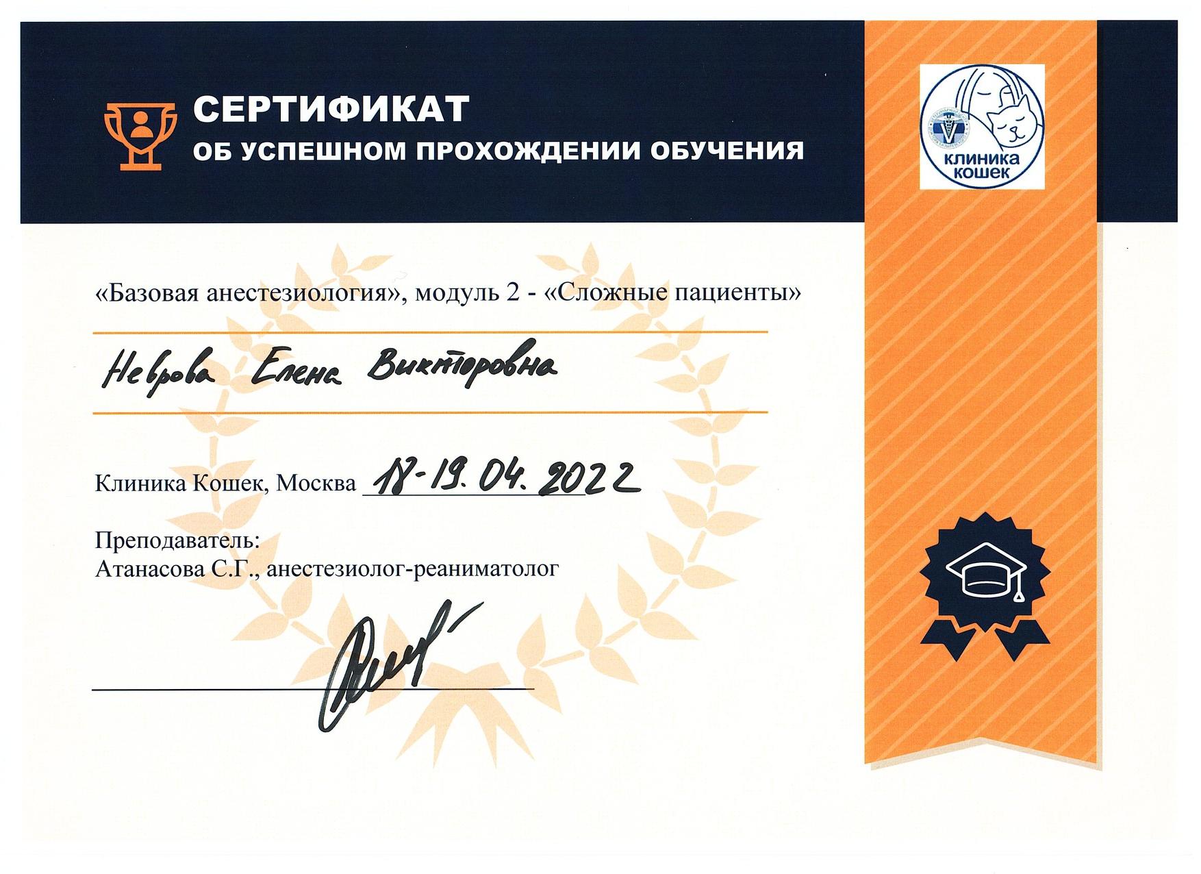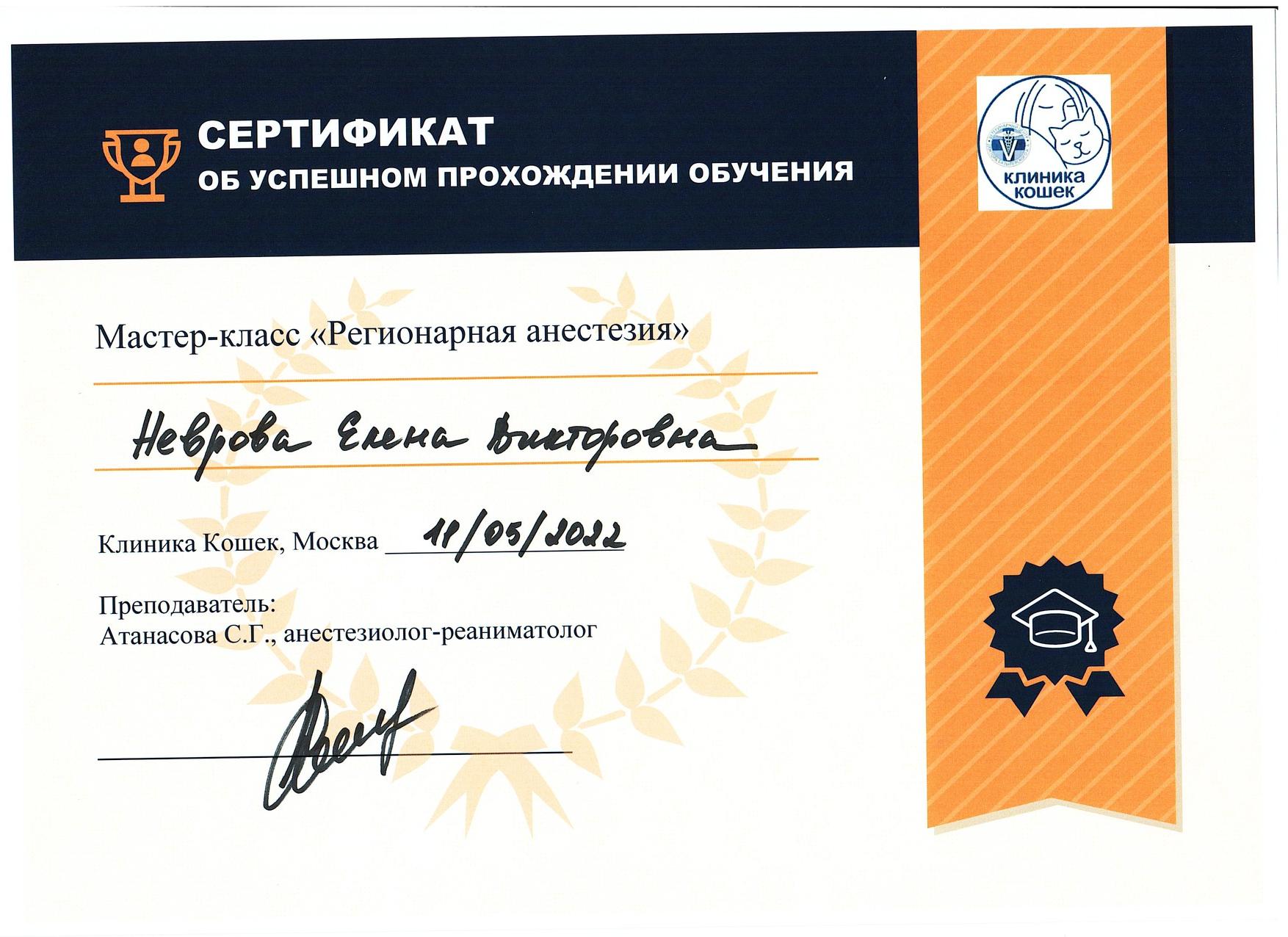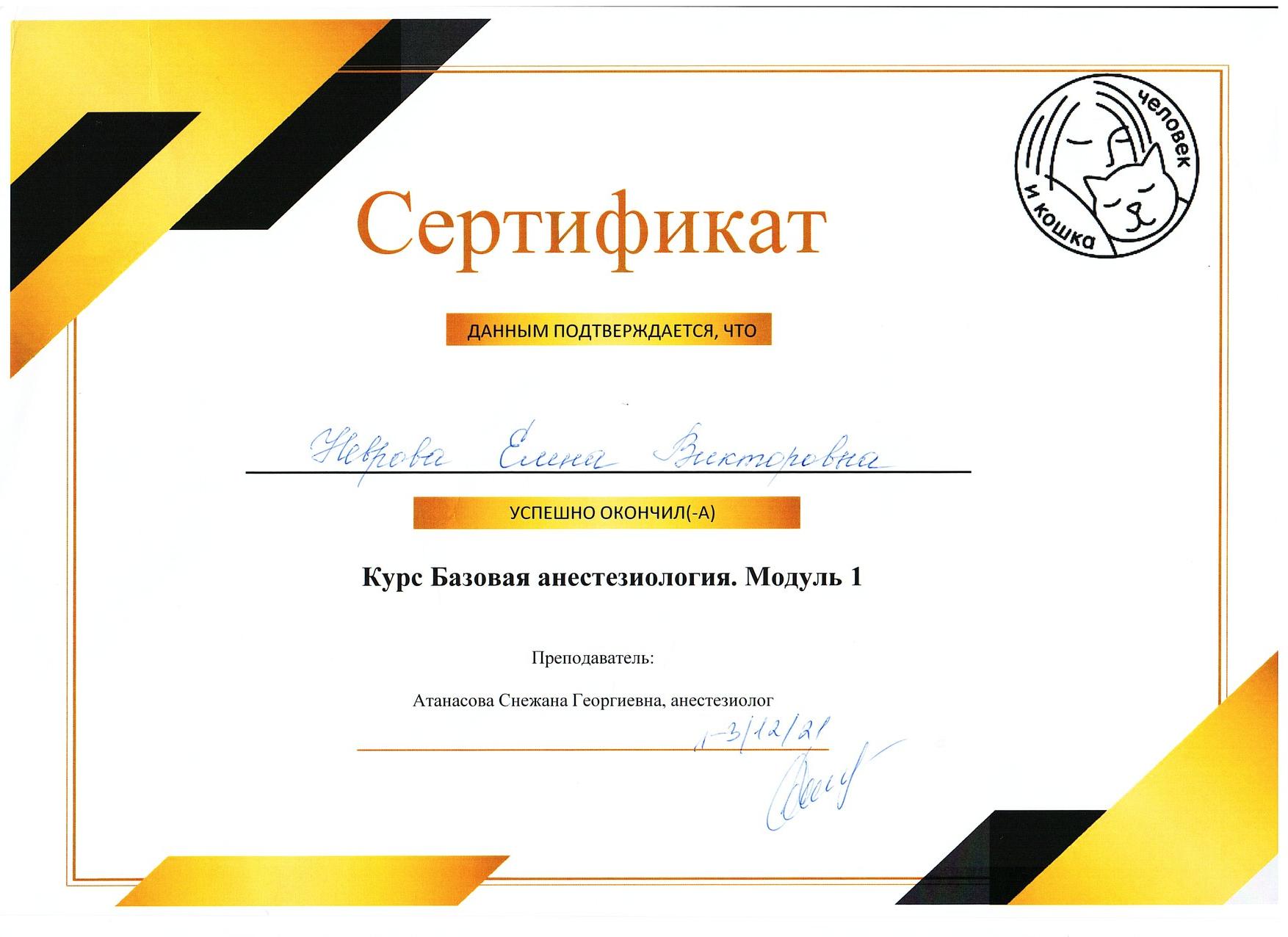 - 2021-2022 трехступенчатный курс от базовой до регионарный анестезии на базе клиники «Клиника кошек»
