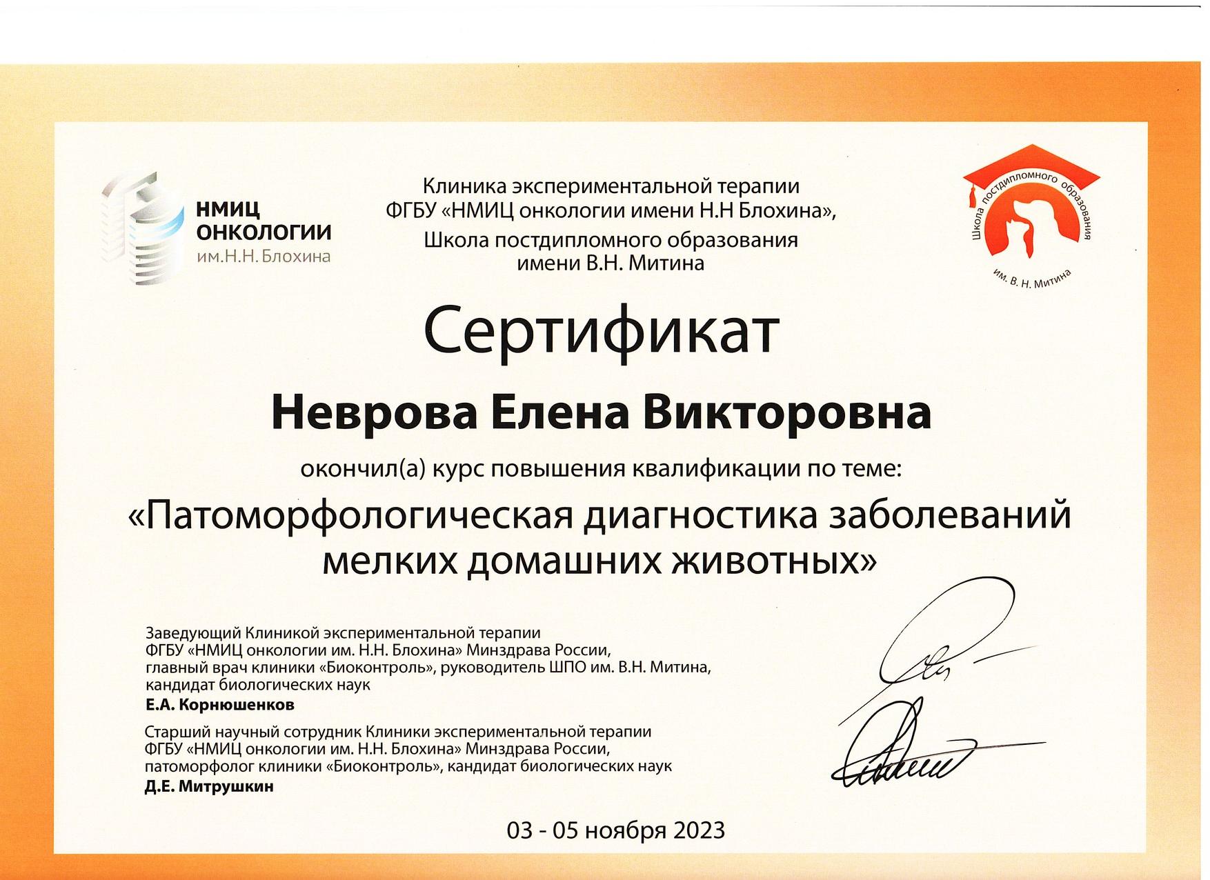 - 2022 г Курс патоморфологическая диагностика заболеваний МДЖ на базе школы постдипломного образования им. В.Н. Митина.