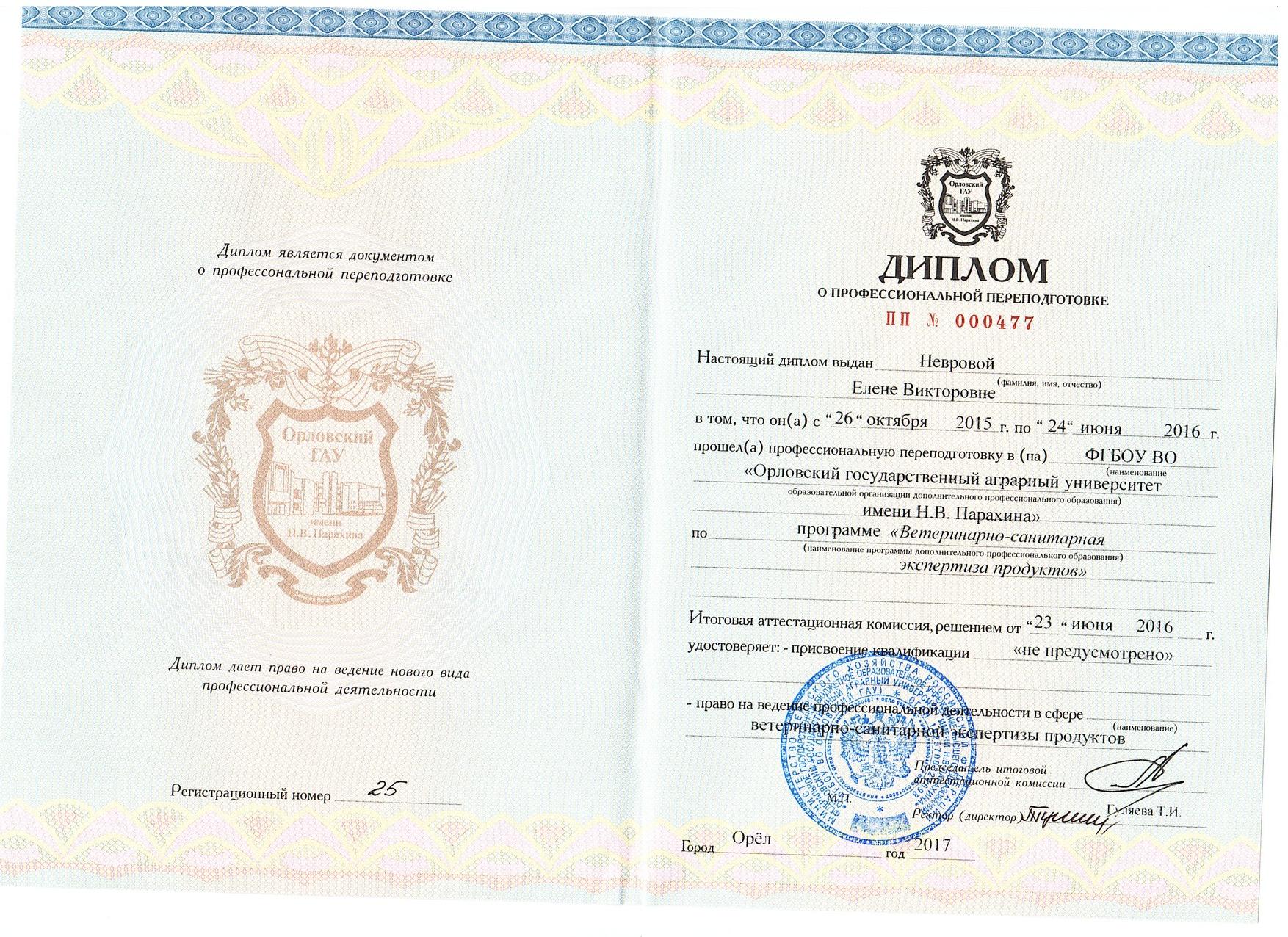 - Курсы повышения квалификации по ветеринарно санитарной экспертизе.
