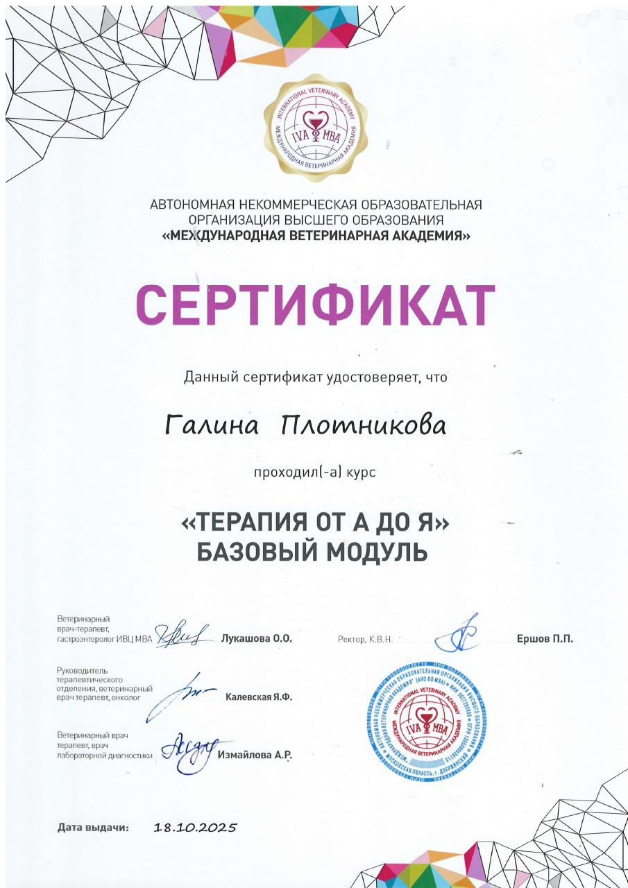 - 2025 г. - курс «Терапия от А до Я», Базовый модуль