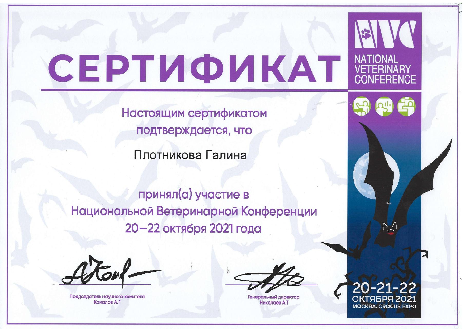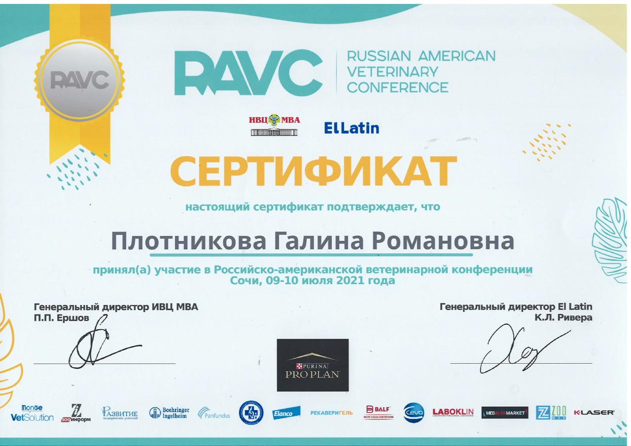 - 2021 г. - участник Российско-Американской ветеринарной конференции