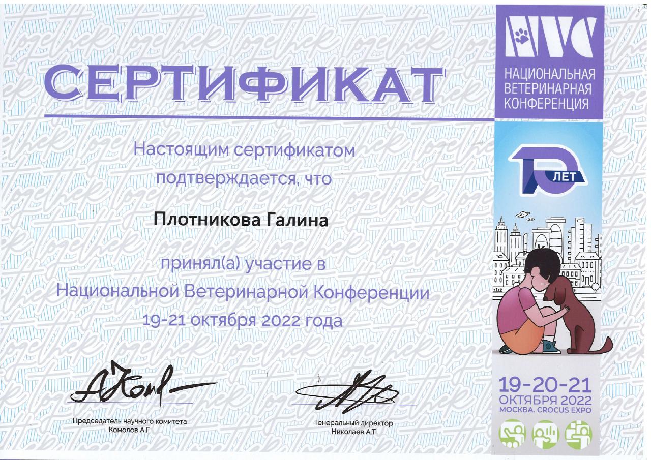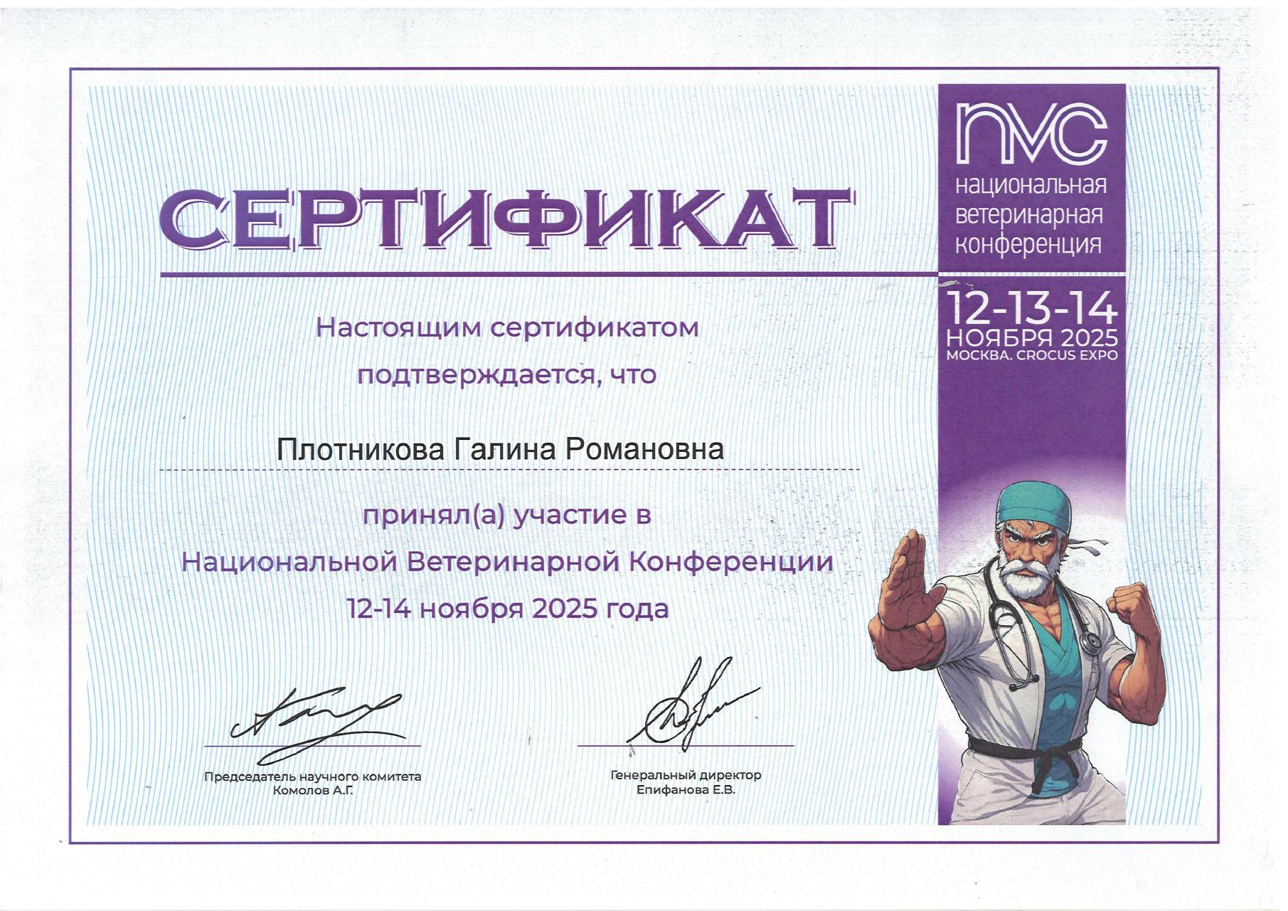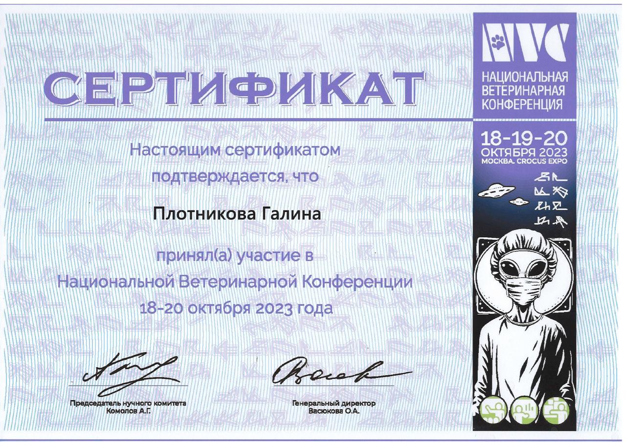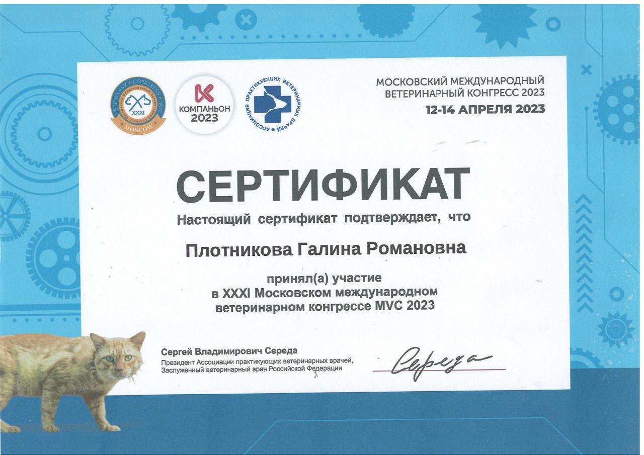 - 2023 г. - участник Московского международного ветеринарного конгресса