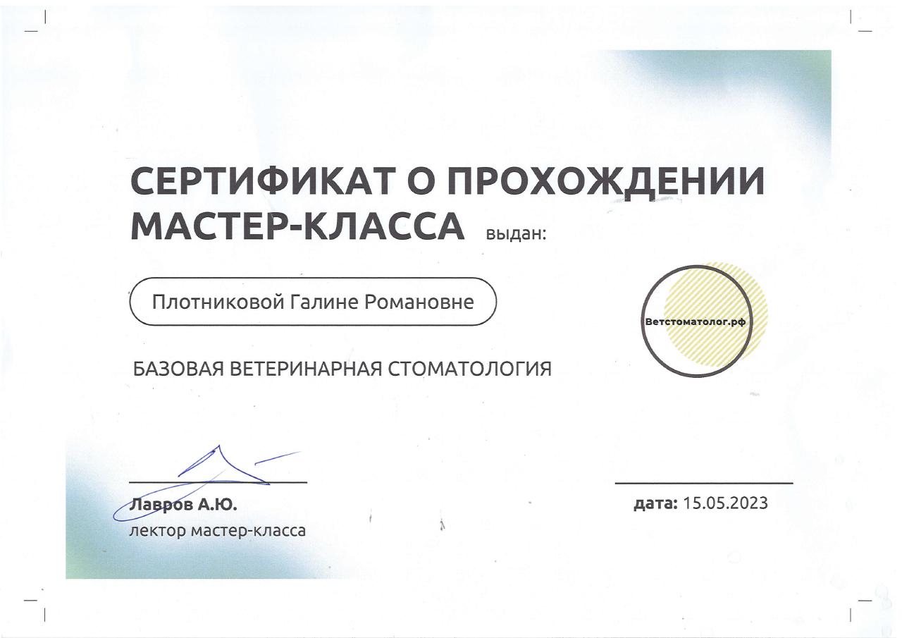 - 2023 г. - мастер-класс по Базовой ветеринарной стоматологии (лектор: Лавров А.Ю.)